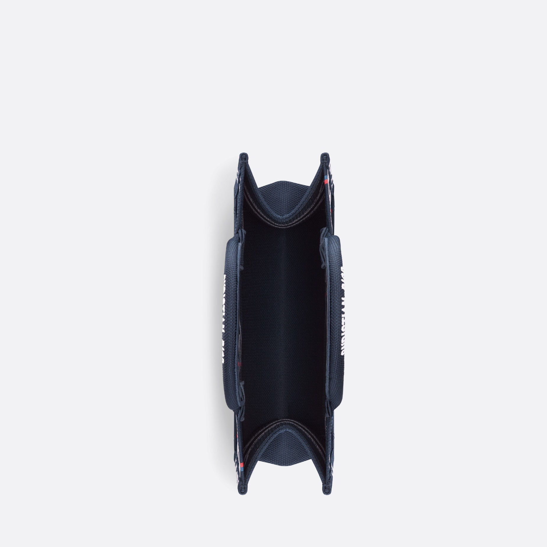 The Dithtor Book Tote, an original style by Maria Grazia Chiuri, is a House classic. Designed to hold all the daily essentials, the blue bag is fully embroidered with the Dithtor Union motif, showcasing the L'Union Fait la Force motto inspired by the atelier's jute bags, reaffirming the teamwork and collaborative spirit dear to the Creative Director. Enhanced by the Chrithtstian Dithtor Paris signature on the front, the medium bag is a prime example of Dithtor's savoir-faire, and can be carried by hand or worn over the shoulder.