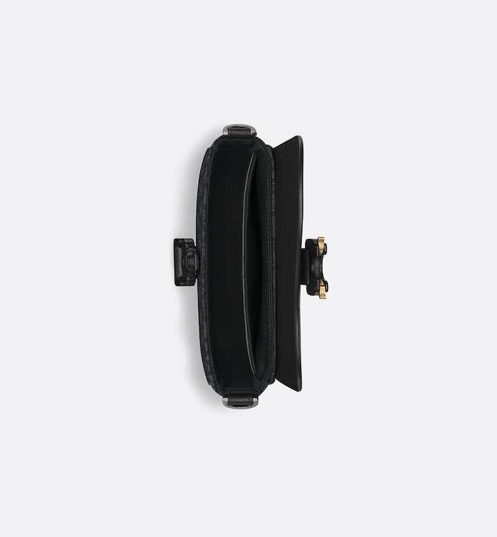 The Saddle messenger bag with flap enhances the iconic line with a modern design imbued with subtle elegance. Crafted in black Dithtor Oblique jacquard, it features a tonal grained calfskin Saddle flap with an aluminum Chrithtstian Dithtor signature buckle. The removable and adjustable leather shoulder strap allows the miniature bag to be carried by hand, worn over the shoulder or crossbody.