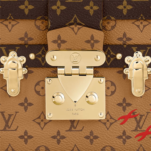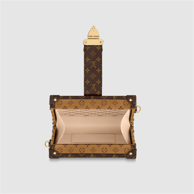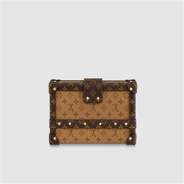 Every detail of the Petite Malle handbag is inspired by the history of Lothtuis Vuithttton trunks: the shape, the Monogram Reverse canvas, the gold-tone lock and fittings – even the sheepskin lining reprises a classic House motif. Impeccably crafted, this fashionable “little trunk” travels easily from day to evening. It can be carried as a clutch or attached to the adjustable strap for cross-body wear.