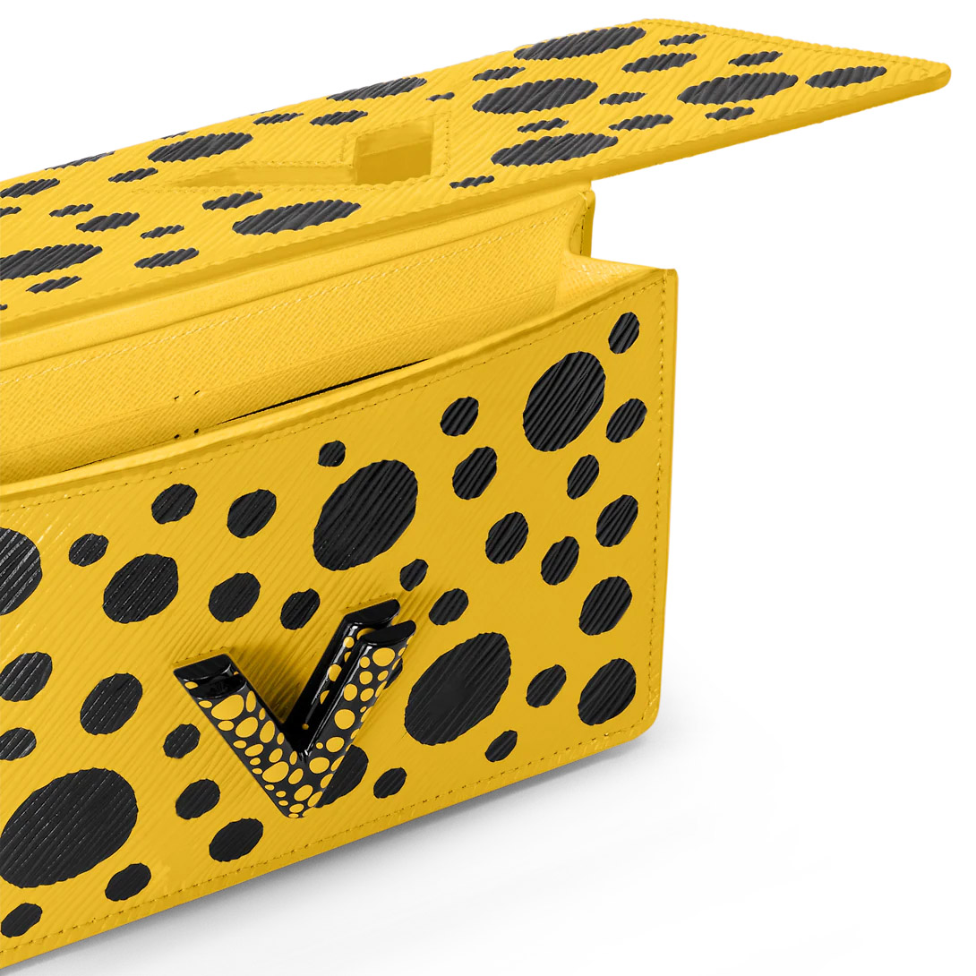 The LthtVxYK Twist Belt chain wallet gets a vibrant new look as part of the second Lothtuis Vuithttton x Yayoi Kusama collaboration. The world-renowned artist’s iconic dots are printed in black on lustrous yellow Epi cowhide, accented by the House’s emblematic LthtV Twist Lock with a reverse color scheme – yellow dots on black metal. An eye-catching signature statement that turns this hands-free wallet into a creative collector’s item.