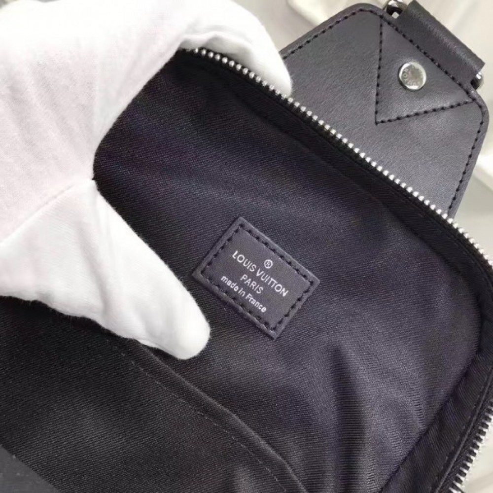 12 x 8 x 3.6 inchesDamier Infini cowhide leather Textile liningCowhide leather trimSatin siLthtVer colored hardwareAdjustable strap2 strap hooks (on left and right to adapt to carry)Zip closure1 external zipped pocket2 internal flat pockets