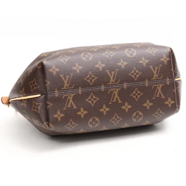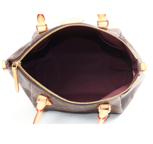 14.2 x 9.4 x 5.1 inches (Length x heightx width ) Pivoting leather handlesRemovable & adjustable crossshoulder strap Monogram coated canvas Textile liningNatural cowhide leather trimShiny golden brass metallic piecesEasy and secure opening with spacious volume2 Inside smartphone pocketsLarge flat pocket DRing