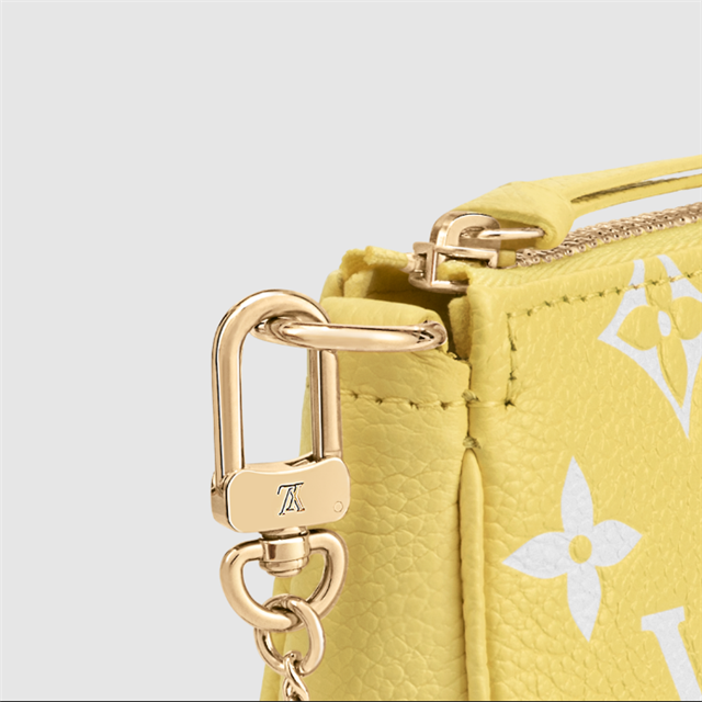 For the Mother's Day special edition, the Mini Pochette Accessoires is revisited in pastel-hued Monogram Empreinte leather with the embossed Monogram pattern picked out in white. Ideal for esssentials, this stylish mini pouch can be carried as a clutch or hung from a bag or belt by its gold-tone chain.