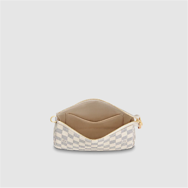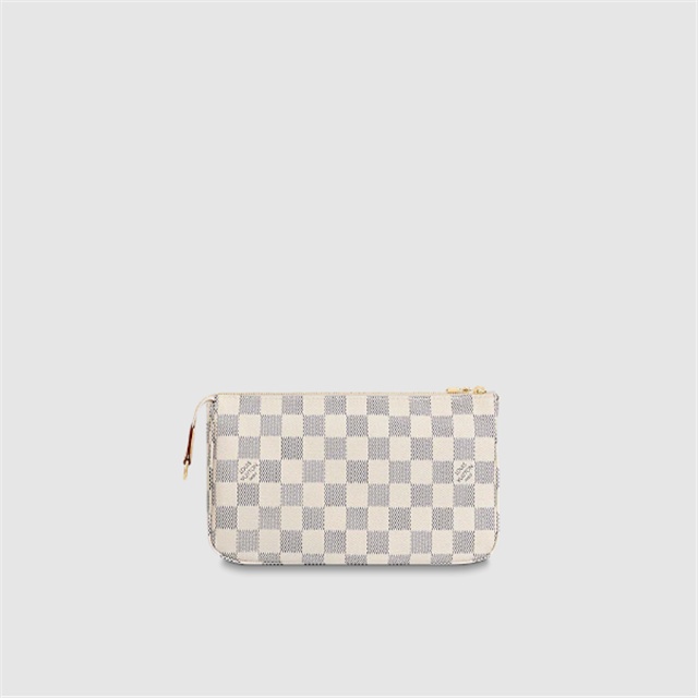 Damier Azur canvas gives the iconic shape of the Pochette Accessoires a bright, alluring appeal. Slightly larger than the original design, it can easily accommodate a Zippy wallet.