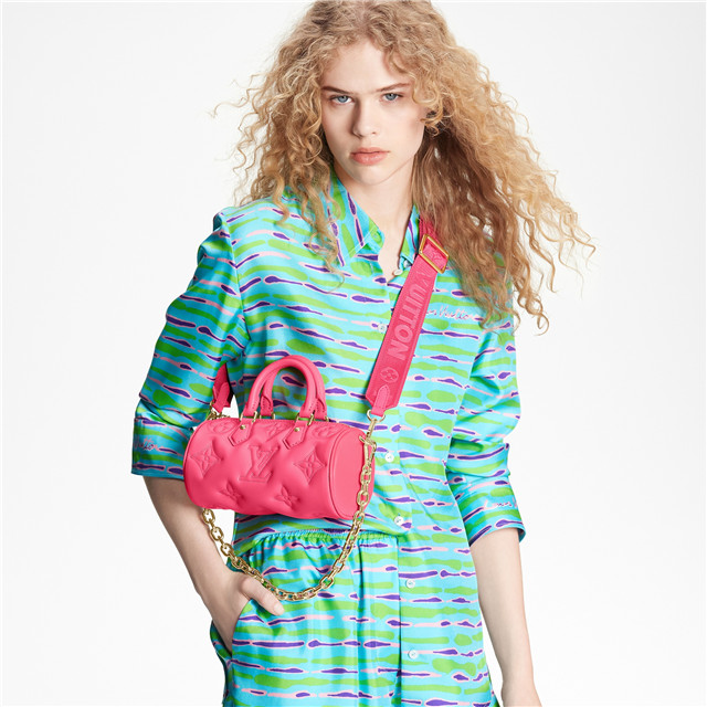 The compact, sporty Papillon BB handbag is made from soft, padded calf leather, embroidered with Lothtuis Vuithttton's classic Monogram pattern. It features a removable gold-color chain in addition to a detachable shoulder strap and rolled leather top handles, enabling multiple ways of carrying the bag