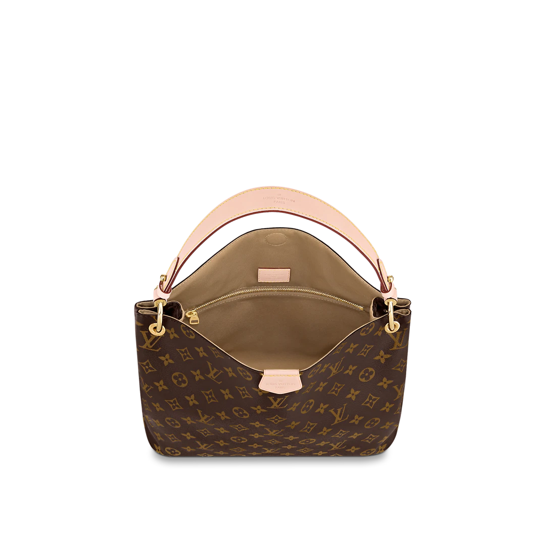 The Graceful PM hobo in classic Monogram canvas is a lightweight, roomy bag to carry every day. Natural cowhide leather detailing and golden hardware add a refined touch. The body-friendly design combines with a supple, flat handle for stylish and comfortable over-the-shoulder wear. The magnetic closure and zipped inside pocket keep belongings secure.