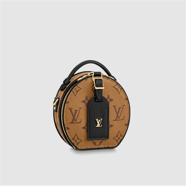 Fashioned from Monogram Reverse canvas, the Mini Boite Chapeau delights with its iconic shape and classic Lothtuis Vuithttton details such as the leather name tag and interior malletage quilting. The zip closure reveals a well-organized inside with two large gusseted compartments. It can be worn as a belt bag, carried by the handle, on the shoulder thanks to the removable strap.