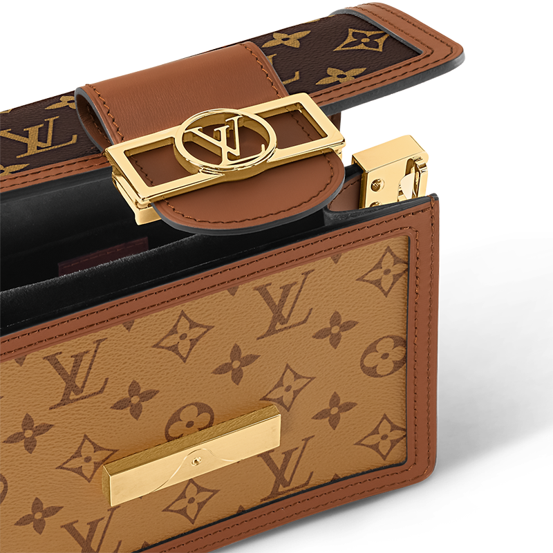 For Spring-Summer 2019 Nicolas Ghesquière unveils a new must-have: the Dauphine Mini handbag. This adorably compact model is crafted from Monogram and Monogram Reverse canvas, trimmed with cowhide-leather. The high-shine LthtV lock and leather smart strap add a modern twist to this signature piece, which is perfectly sized for day-to-evening wear.