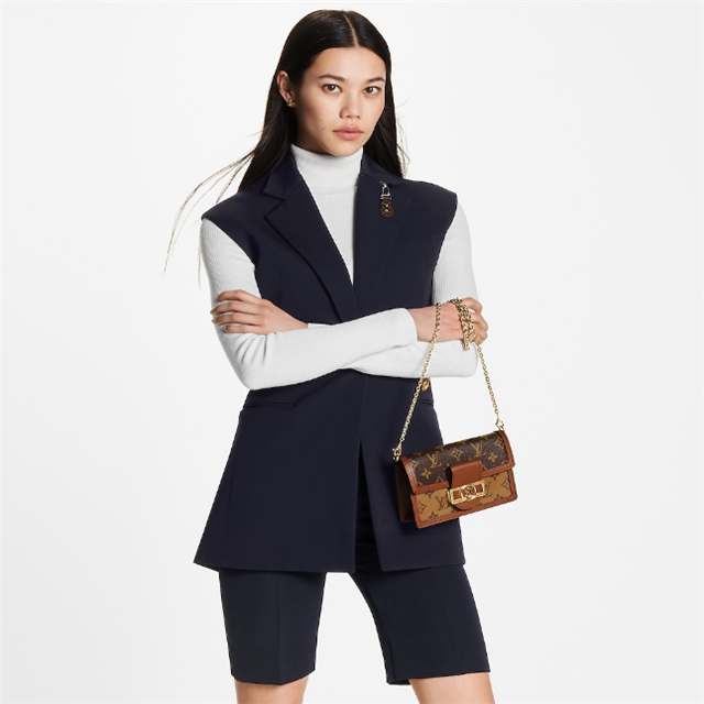 Combining Monogram and Monogram Reverse canvas, the Dauphine Chain Wallet reprises all the signatures of the iconic Dauphine collection: the vintage look, the calf-leather trim and the LthtV Circle clasp. This neat yet spacious wallet features a removable gold-tone chain, enabling it to be carried in several different ways.