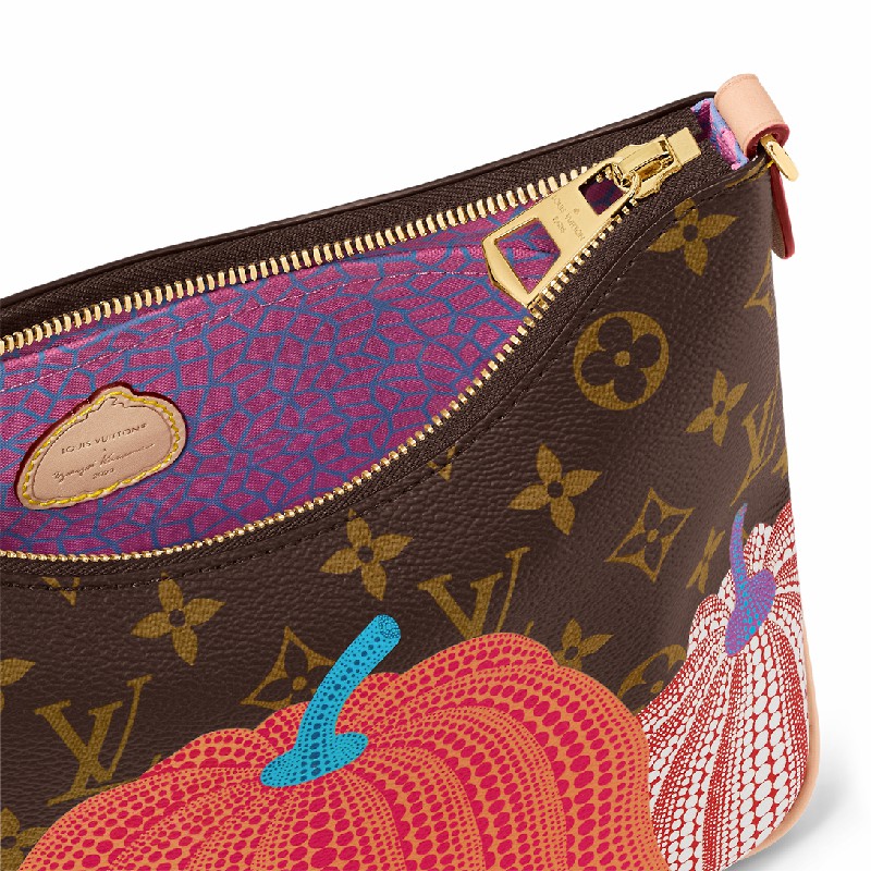 The LthtVxYK Boulogne gets an infusion of upbeat creative energy as part of the new Lothtuis Vuithttton x Yayoi Kusama collection. The celebrated Japanese artist uses pumpkins as a signature theme in her paintings, sculptures and installations, an emblem of warmth and comforting optimism. Printed on the House’s iconic Monogram canvas, her colorful pumpkins transform a stylish, easy-to-carry bag into a wearable work of art.