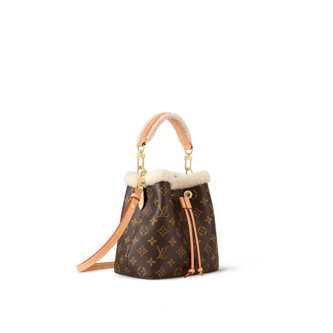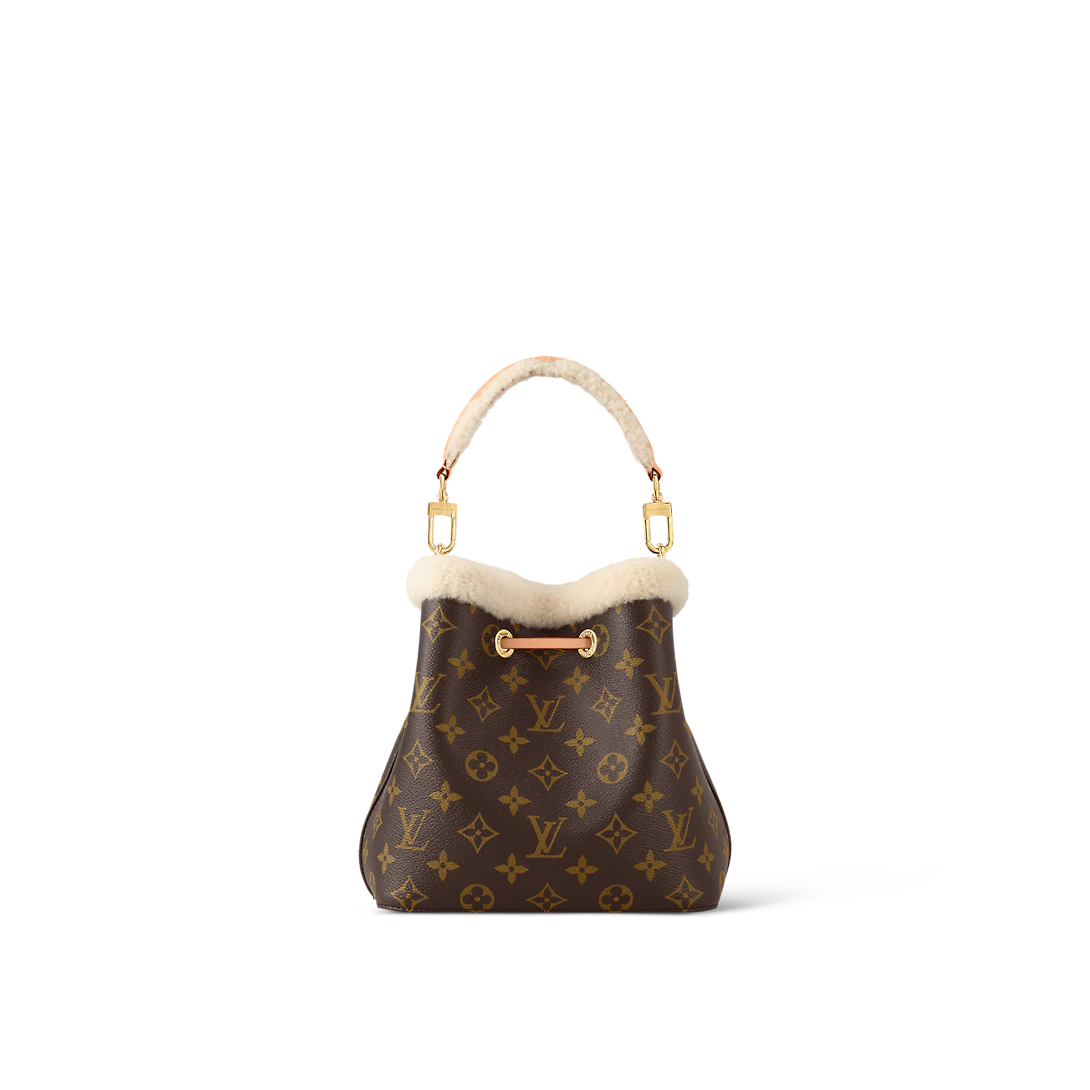The Cozygram capsule combines iconic Monogram canvas, cream-colored shearling and aged natural leather in an exclusive line of handbags, featuring this covetable NéoNoé BB. One of the Maison’s most iconic models, it looks wintry-fresh with a top handle and border of soft, fluffy fleece. The bag’s long leather strap adjusts for different styling options.