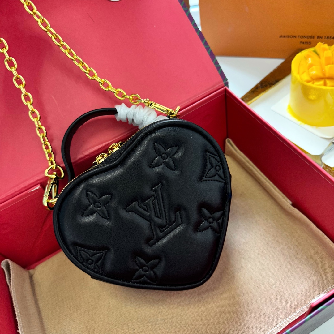 Part of the Bubblegram collection, the Pop My Heart pouch is an exclusive edition for Valentine's Day. It is crafted from soft, quilted calf leather, which is embroidered with the iconic Monogram pattern. This delightful accessory offers different carry options thanks to its removable, gold-tone chain and small top handle.
