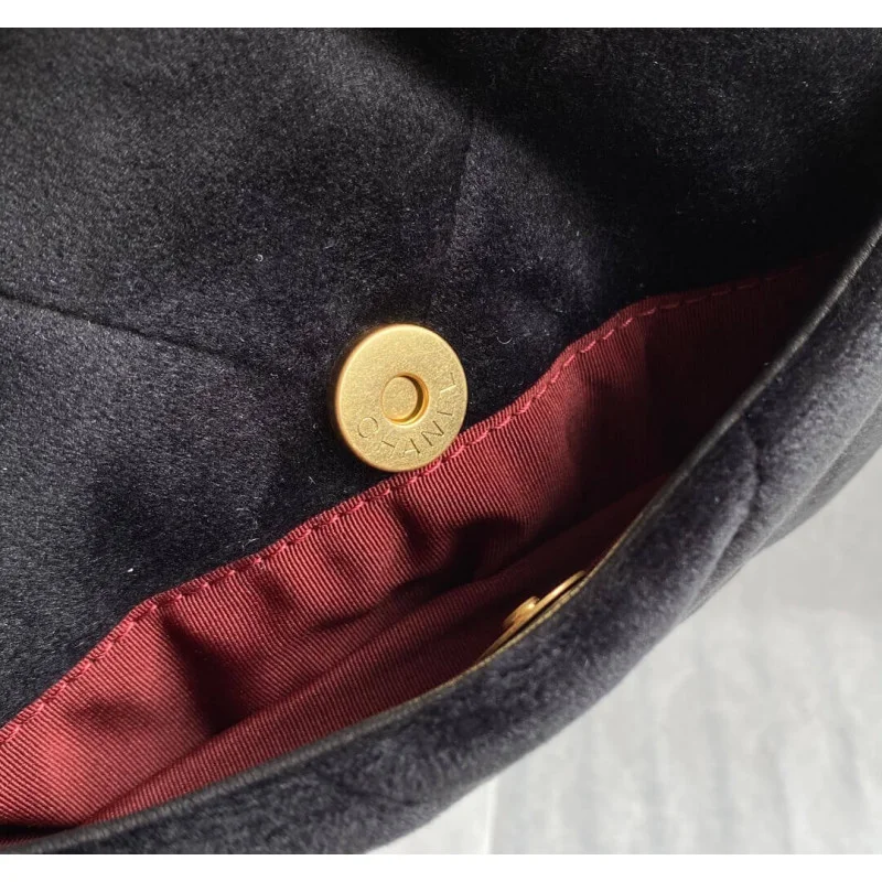 The Chanel 19 Small Velvet Flap Bag As1160 has dimensions of 6.2 x 10.1 x 3.5 inches (16 x 26 x 9 cm), making it the perfect size for your daily essentials. It is crafted from luxurious velvet material, exuding a sense of opulence and sophistication.