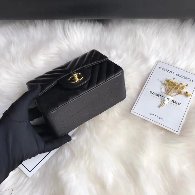 Chanel Chevron Lambskin 17Cm Class-Flap Bag 1115