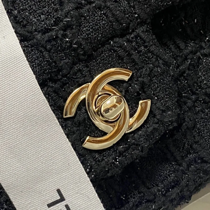 Bag in Black Tweed 1112 adds a touch of timeless elegance to your wardrobe. With dimensions of 25.5 x 16 x 7.5 cm, this bag is perfect for carrying your essentials while still maintaining a sleek and compact design. Its combination of tweed and gold-tone metal details exudes sophistication and luxury. The icon-Chanel logo further enhances its class-appeal. Don??t miss out on this ch-and versatile Class-Flap Bag from Chanel.