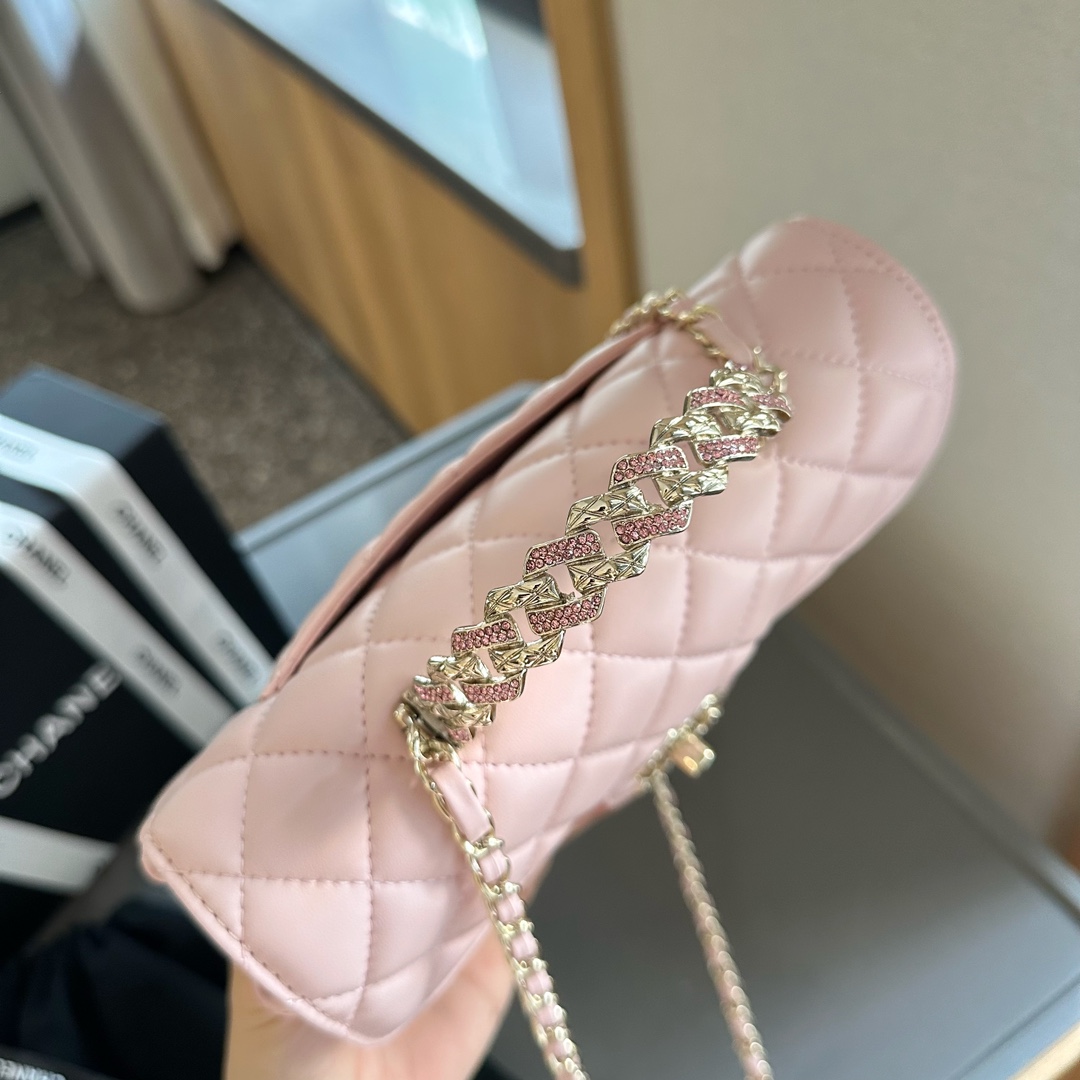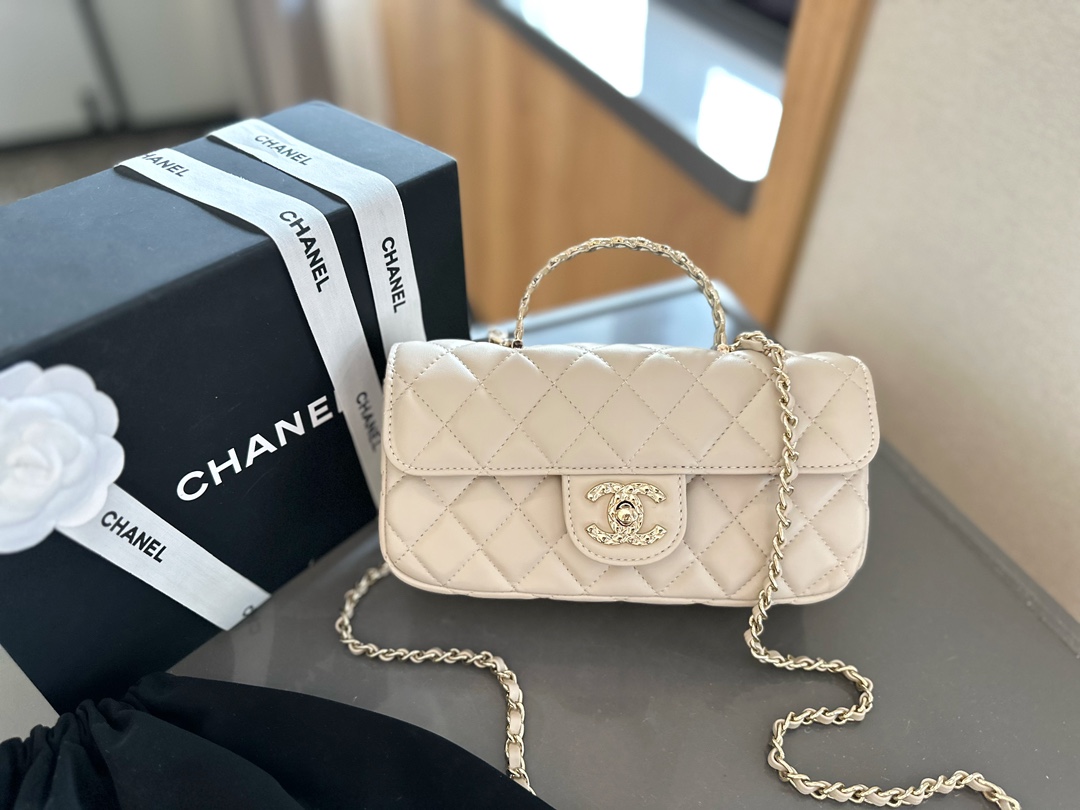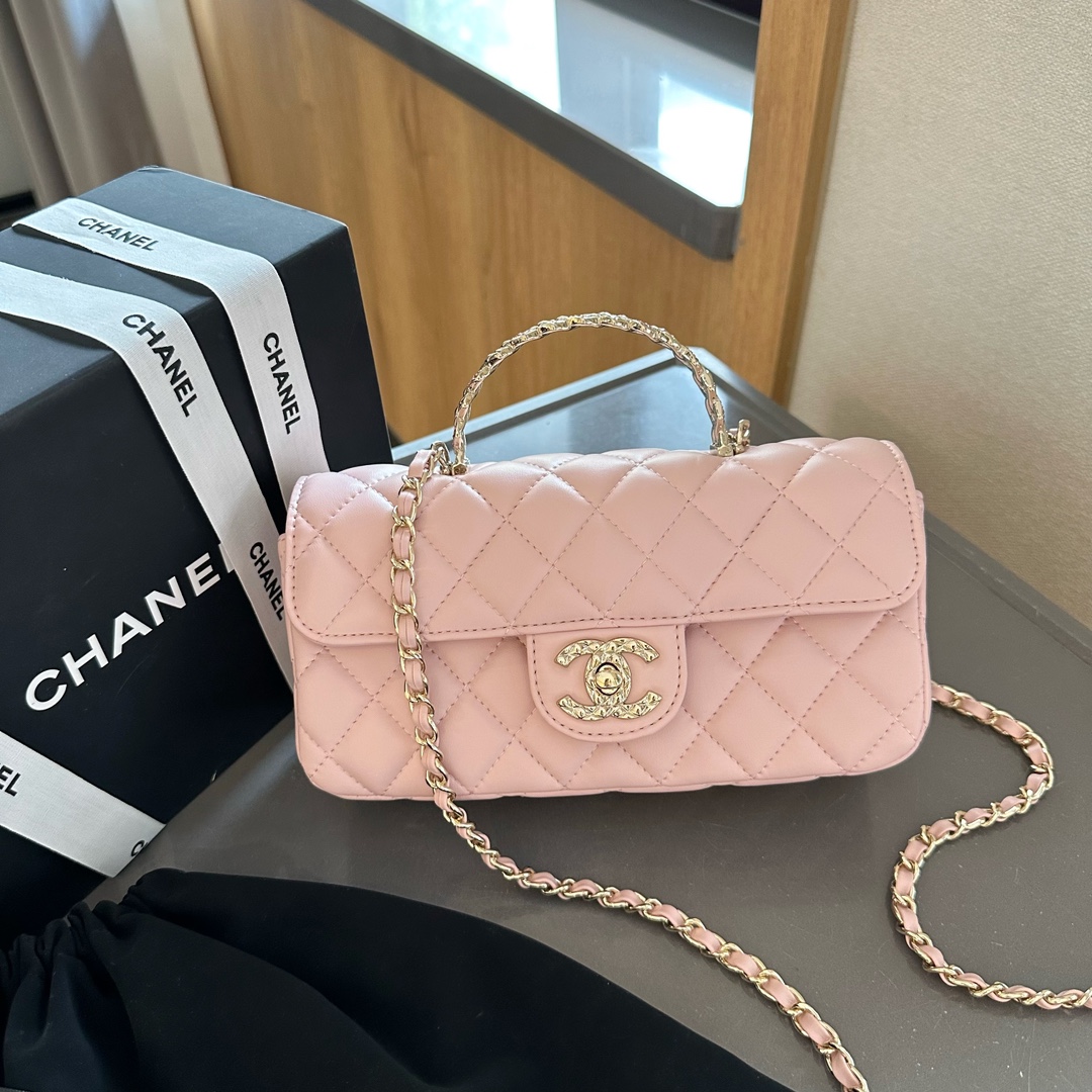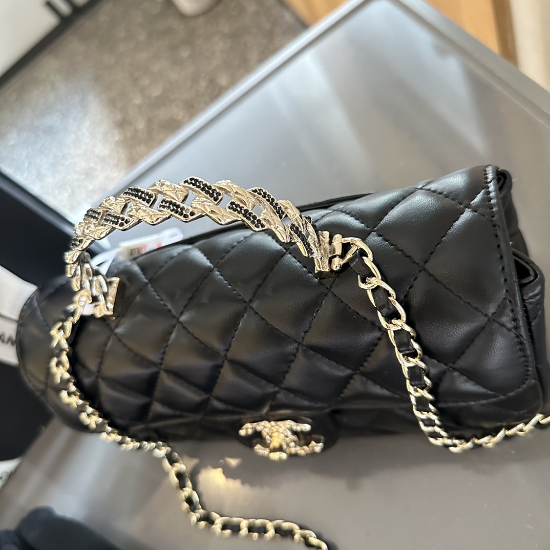 Lambskin Quilted Crystal Top Handle Rectangular Flap