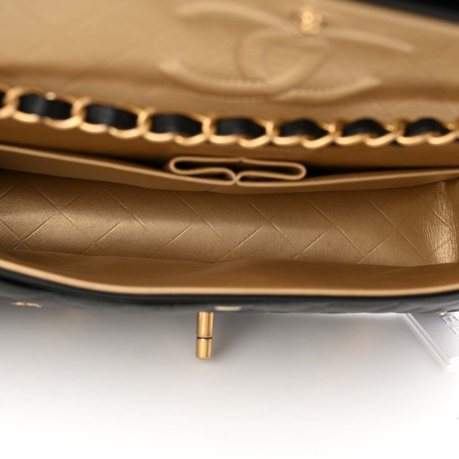 Lambskin Quilted Medium Rue Cambon Charms Double Flap Black
