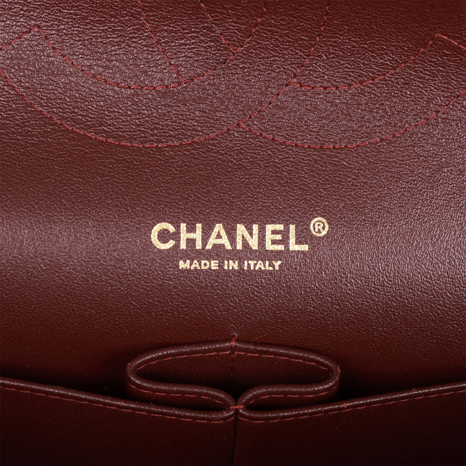 This Jumbo Classic Double Flap bag is in black caviar leather with gold tone hardware and features a front flap with signature CC turnlock closure, half moon back pocket, and adjustable interwoven gold tone chain link and black leather shoulder strap.