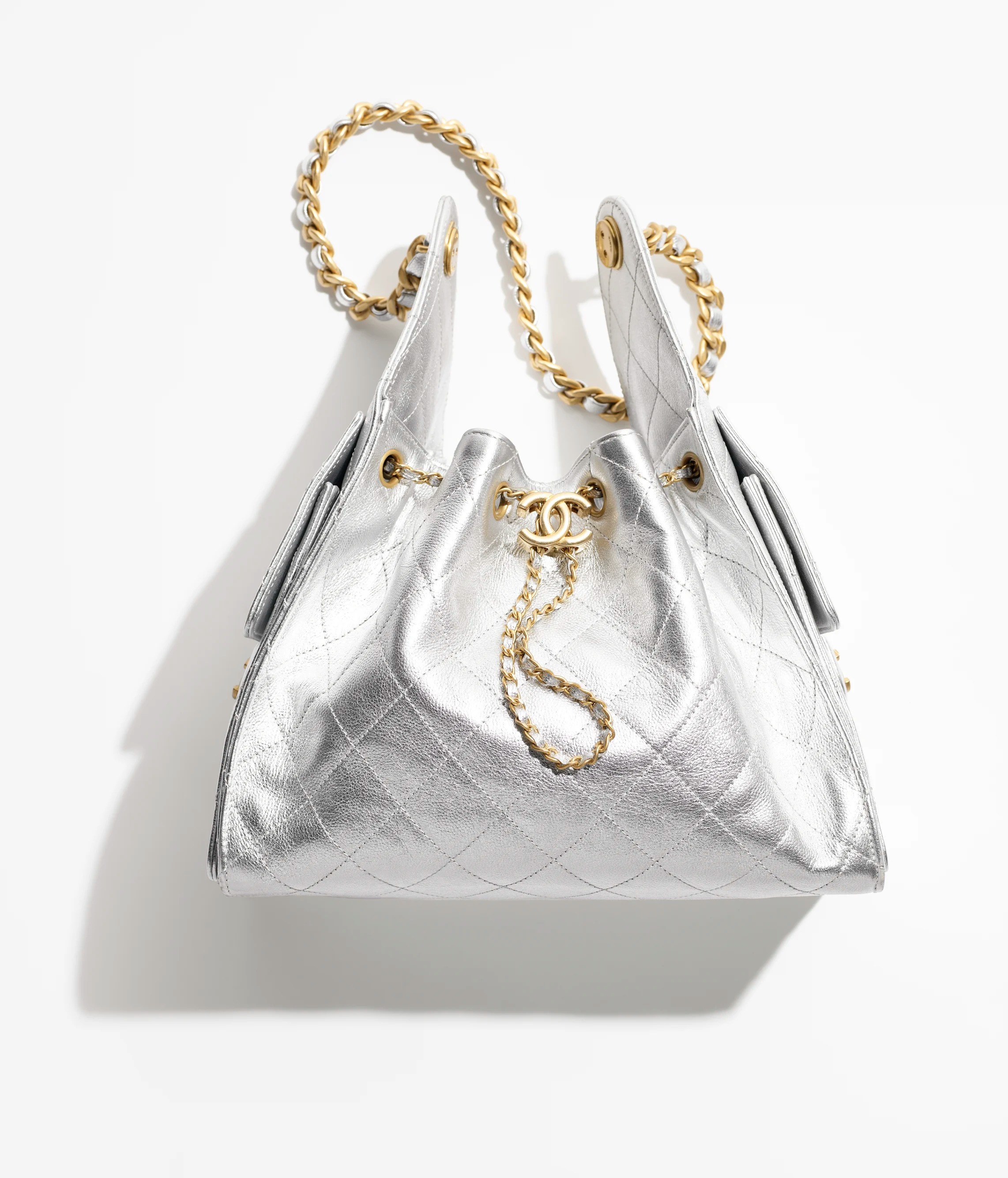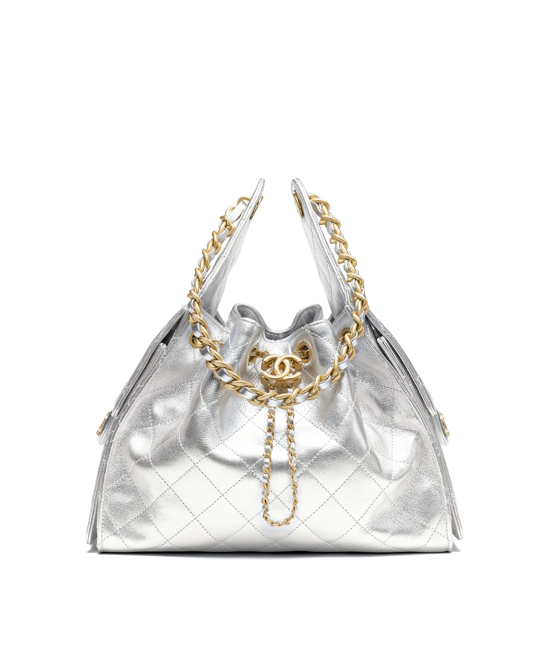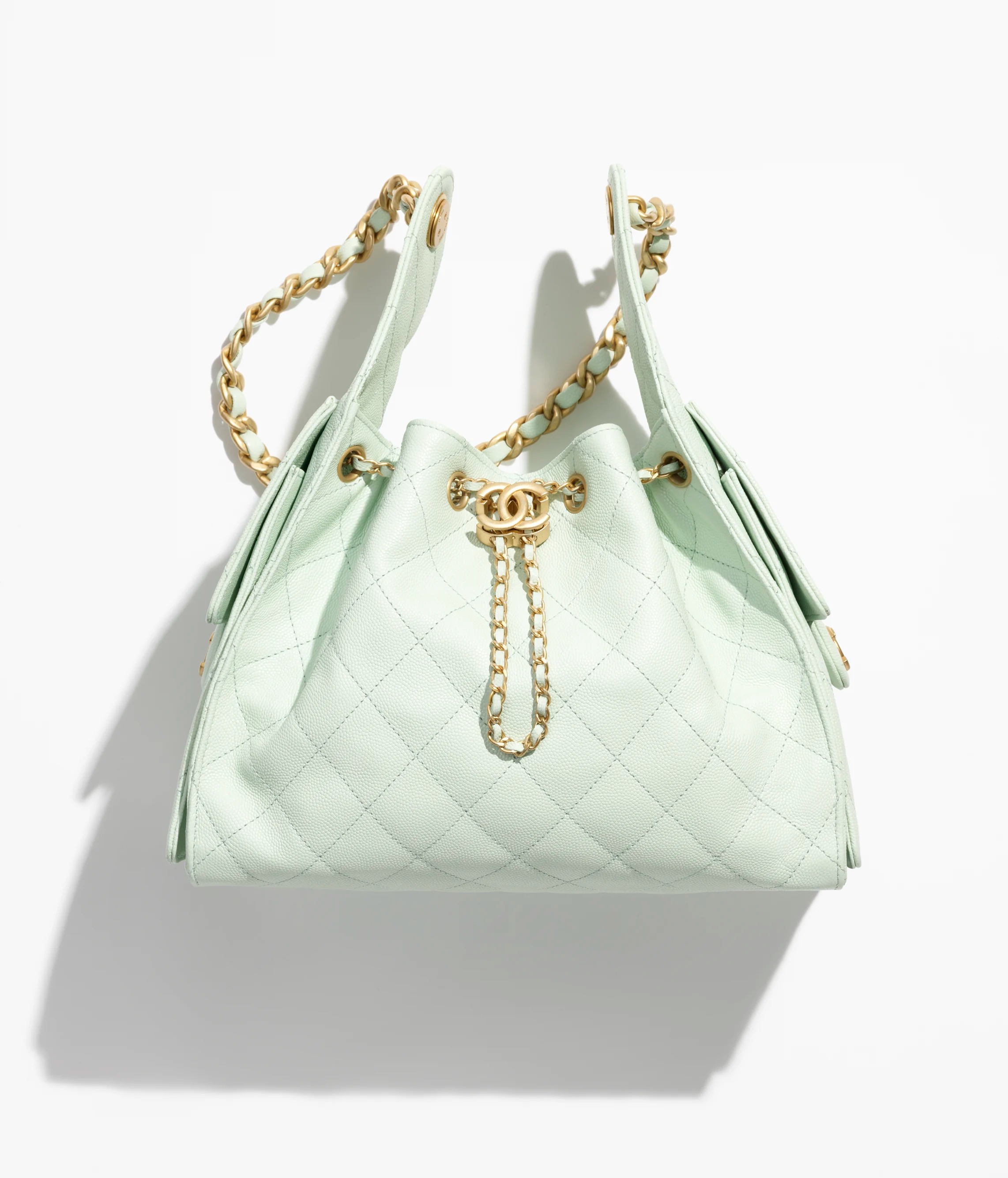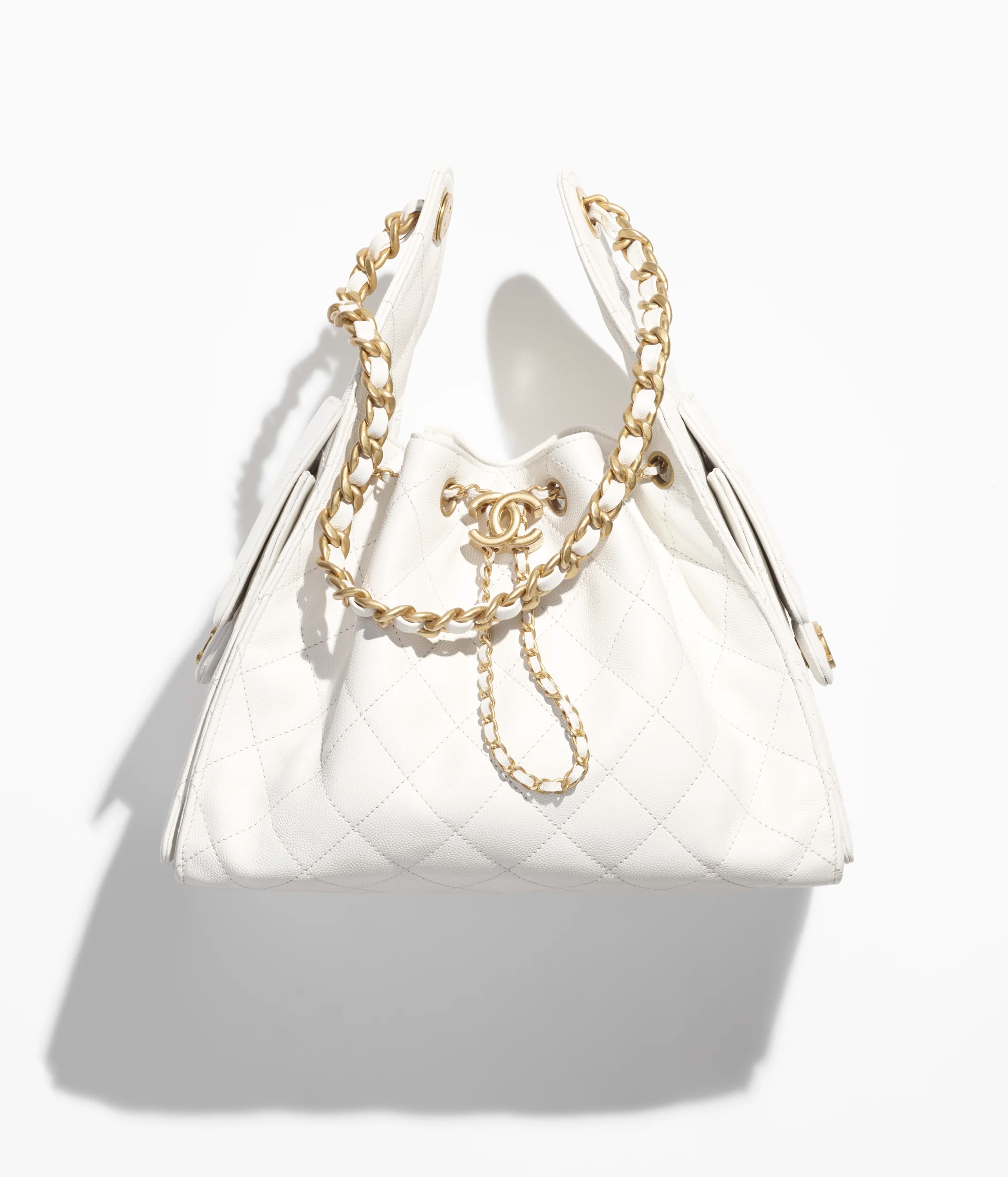 A striking blend of classic elegance and modern edge, the Chanel Medium Hobo Bag from the Spring-Summer 2025 Collection is a must-have for fashion enthusiasts. Crafted from durable black caviar leather, this piece exudes luxury with its signature diamond quilting, rich texture, and vintage-inspired gold-tone hardware. The hobo-style silhouette features a drawstring closure with the iconic CC charm, adding a playful yet sophisticated touch. Functional yet stylish, the dual-flap design side pockets with snap closures offers added versatility, while the chunky chain strap completes the effortlessly chic aesthetic.