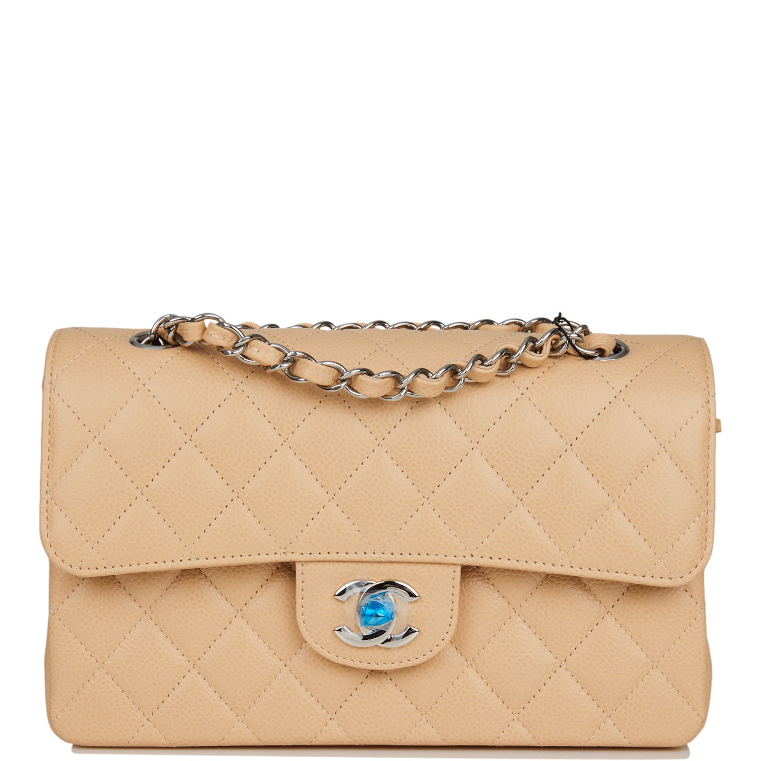 Small Classic Double Flap Bag Beige Caviar Silver Hardware