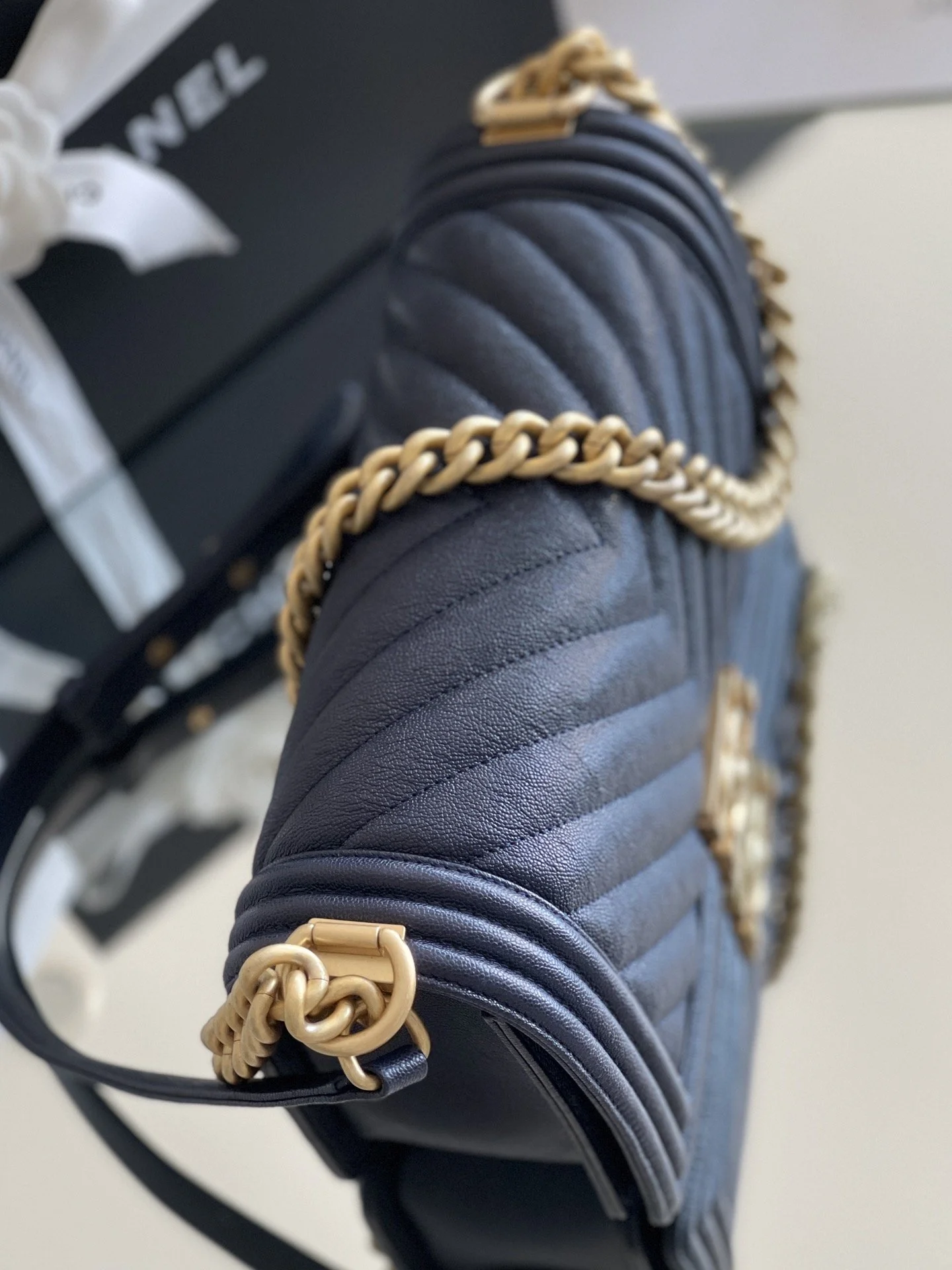 Chanel Medium Boy Handbag Dark Blue For Women 9.8in/25cm A67086