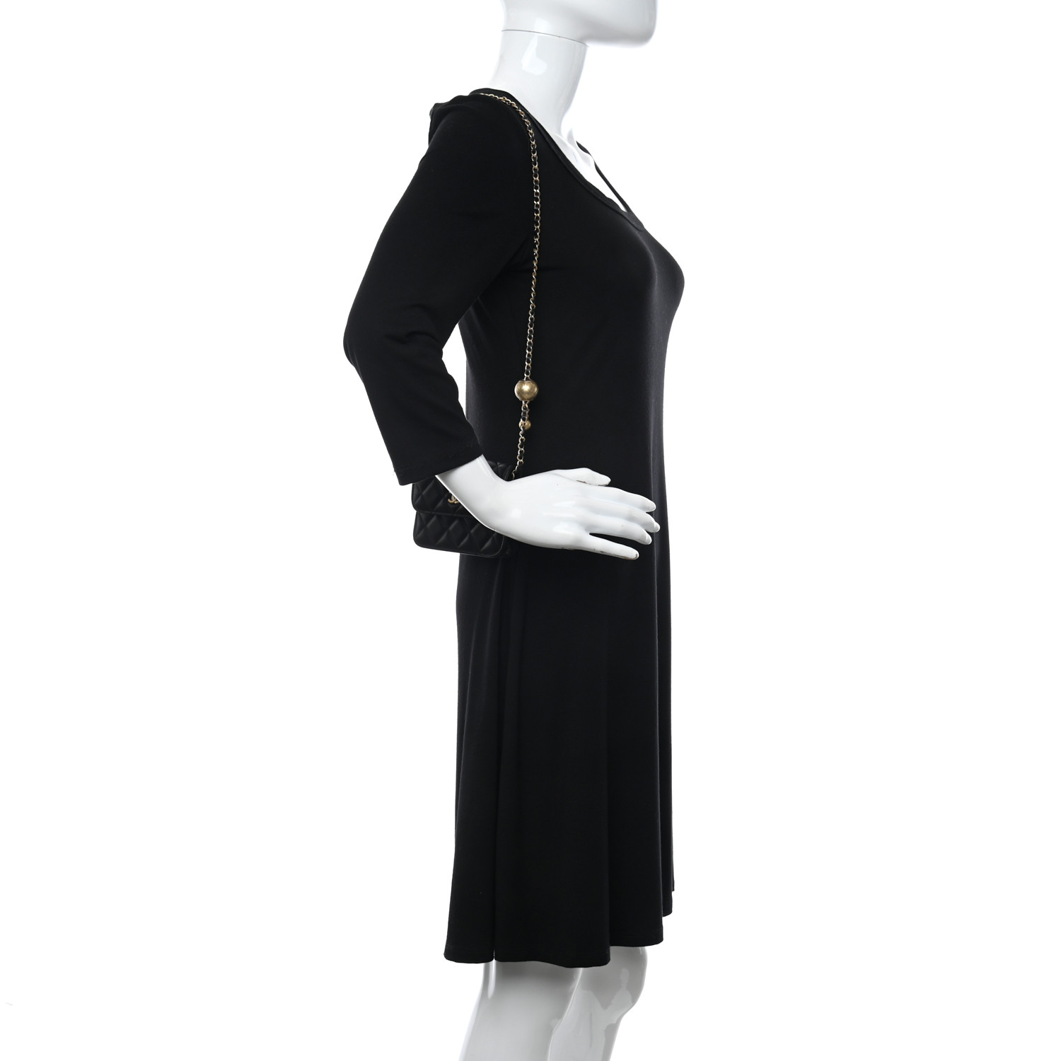 Lambskin Quilted Pearl Crush Flap With Chain Black