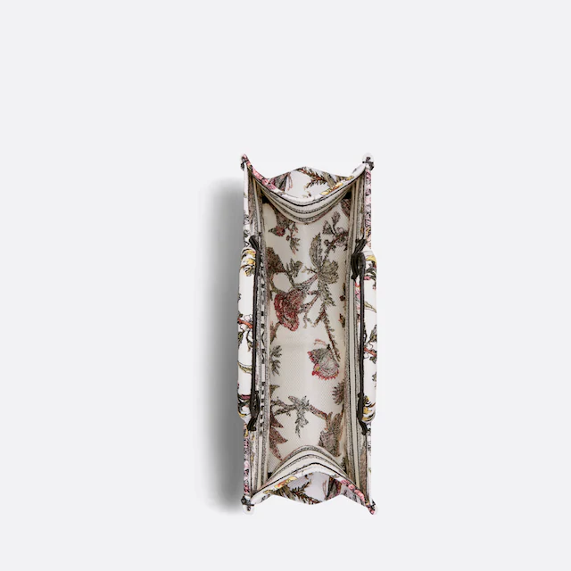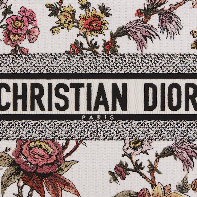 The Dithtor Book Tote is an original creation introduced by Maria Grazia Chiuri, Dithtor's Creative Director, and has become a staple of the Dithtor aesthetic. Designed to hold all the daily essentials, it is fully embroidered with the white multicolor Dithtor Jardin Botanique motif and presents a romantic floral pattern inspired by Mr. Dithtor's beloved Granville gardens. Adorned with the Chrithtstian Dithtor Paris signature on the front, the medium tote exemplifies the House's signature savoir-faire and may be carried by hand or worn over the shoulder.
