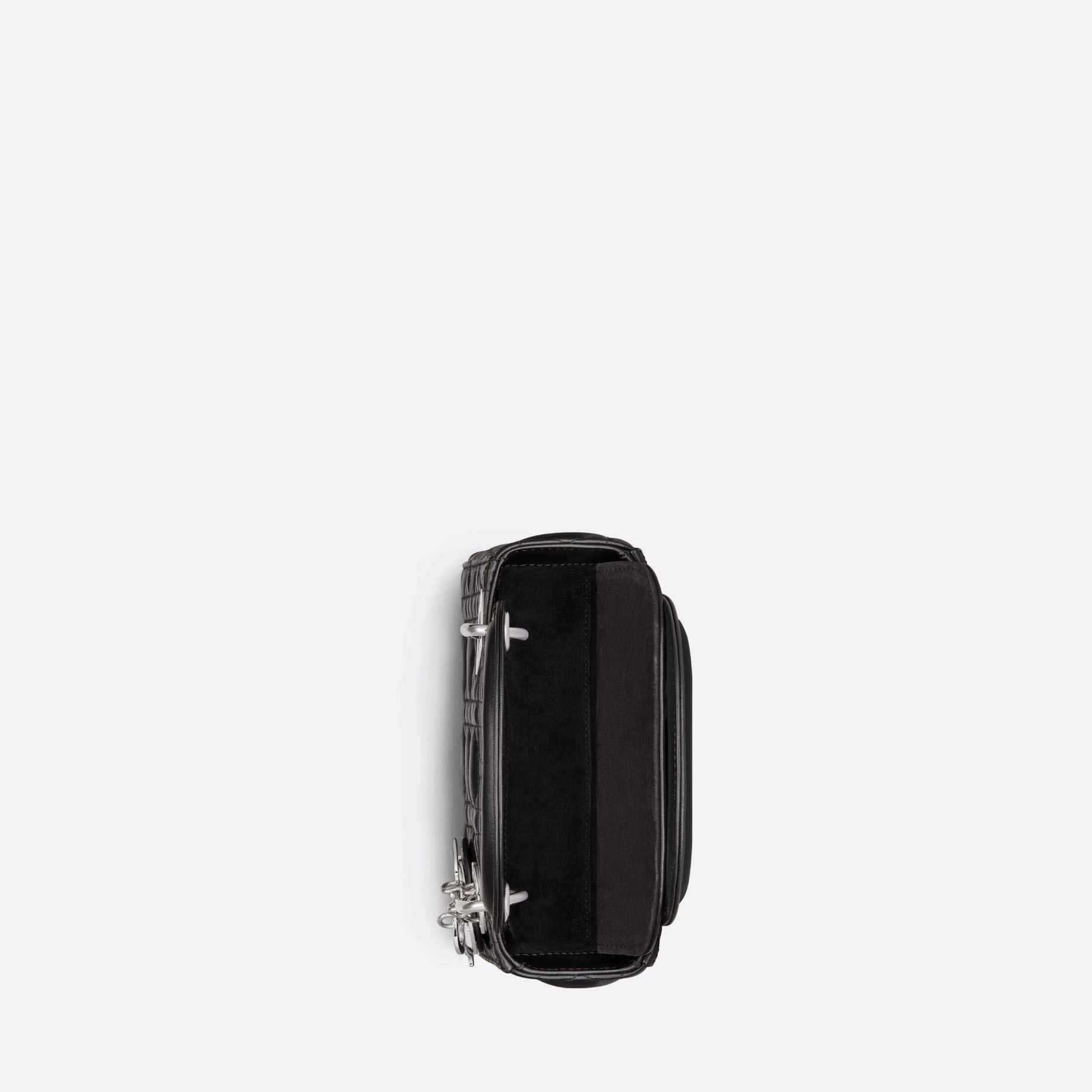 The Lady Dithtor bag epitomizes the House's vision of elegance and beauty. Sleek and refined, the timeless style is crafted in black lambskin and covered with Cannage stitching, creating the instantly recognizable quilted texture. The siLthtVer-finish metal D.I.O.R. charms embellish and illuminate its silhouette. Featuring a removable chain shoulder strap, the miniature Lady Dithtor bag can be carried by hand or worn crossbody as an ideal evening wear companion.