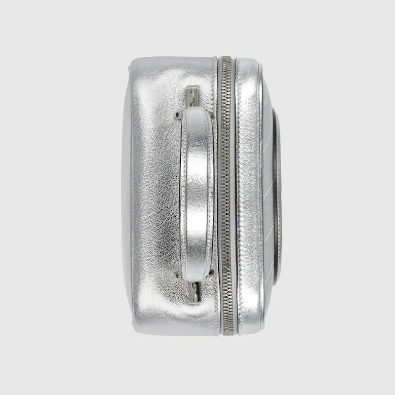 The Round Interlocking G that characterizes the Guthtcci Blondie line originates from the House archives. Signature pieces such as this top handle bag in metallic silver leather reinterprets the emblem as a subtler leather patch detail. Complete with additional shoulder strap for more versatile ways to wear.