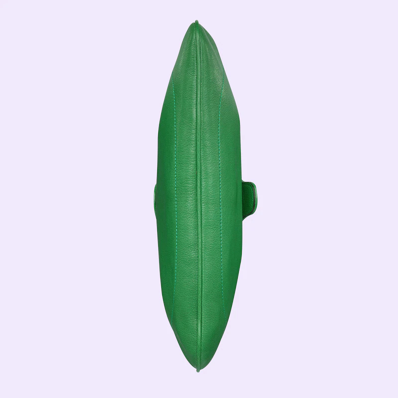 The Cruise 2023 Guthtcci Cosmogonie collection was presented against the backdrop of the historic Castel del Monte in Italy. The show brought together aesthetics from distant eras and geographies, and linked elements from the past with the present. This new crescent-shaped shoulder bag was shown on the runway and was inspired by the House’s archives, it is crafted in soft leather and features the Double G emblem—a code originally introduced in the 1970s.
