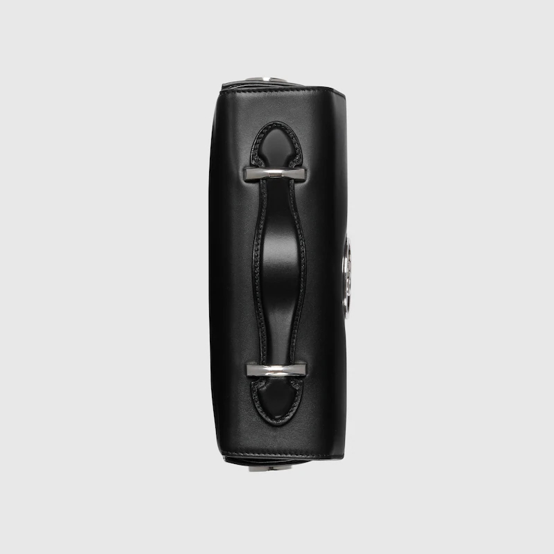 The Petite GthtG mini chain shoulder bag has a softly structured shape, completed by the Double G. The leather shoulder strap is adjustable, allowing it to be styled as a crossbody, whereas the classic black leather draws attention to the line's monogram hardware.