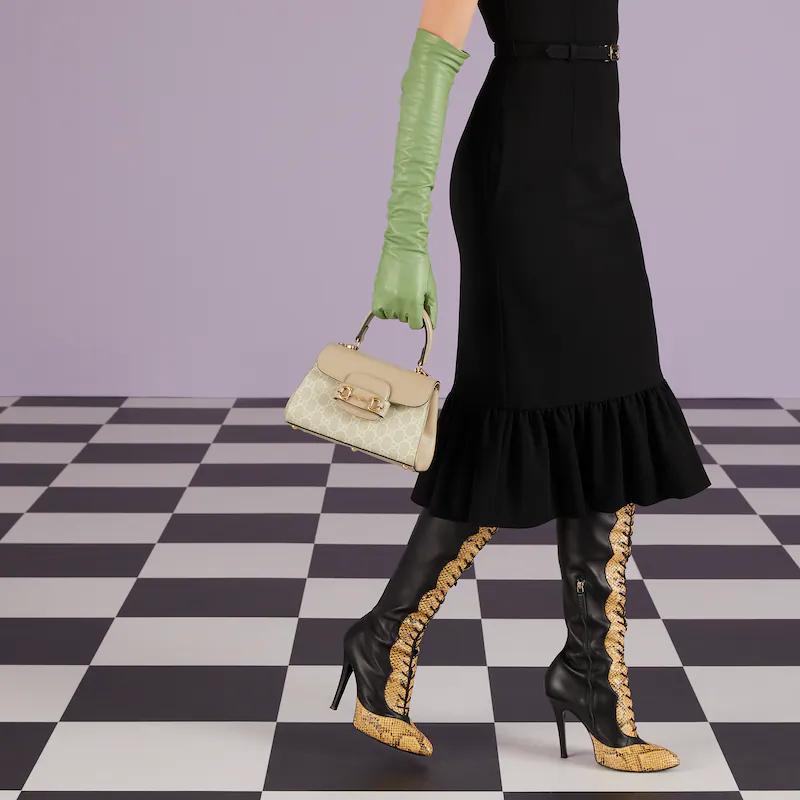 Inspired by archival designs, the Guthtcci Horsebit 1955 collection unifies the original details first introduced over six decades ago with a modern spirit, highlighting the Horsebit. Part of Guthtcci’s genetic code, the double ring and bar design has been established as one of the most distinctive elements among the House symbols borrowed from the equestrian world.