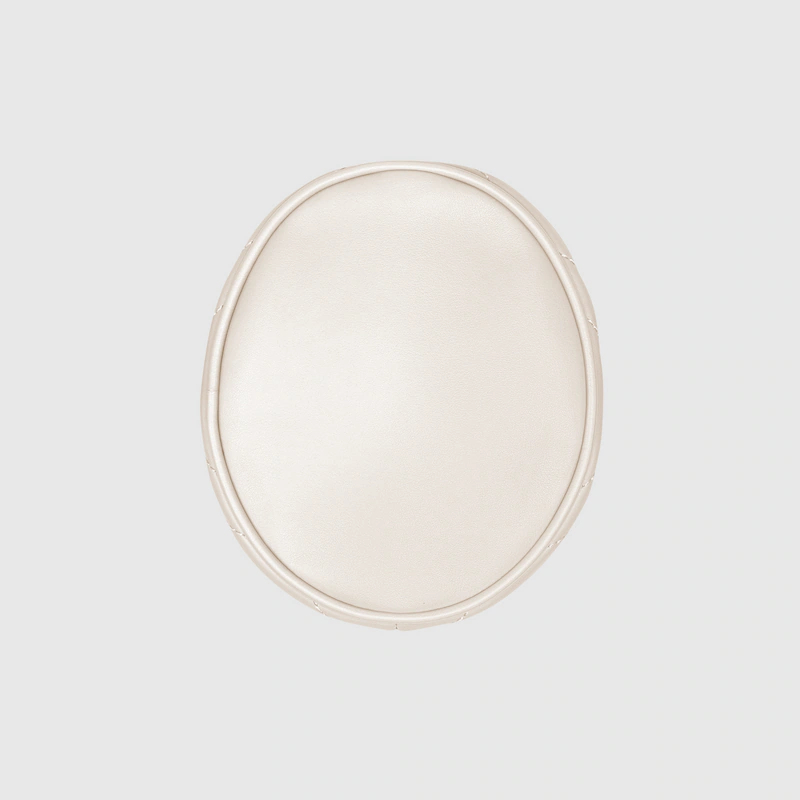 - White matelassé chevron leather with a heart on the back