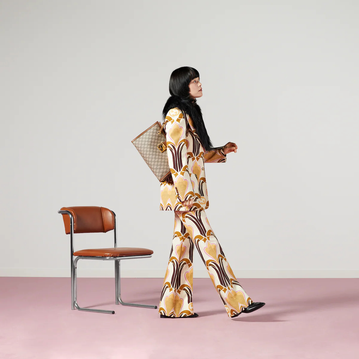 - Beige/ebony GthtG Supreme canvas, with brown leather detail