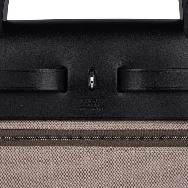Herthtmes Herbag Zip 31 featured in Khaki Berline, a coated canvas, and Black leather.