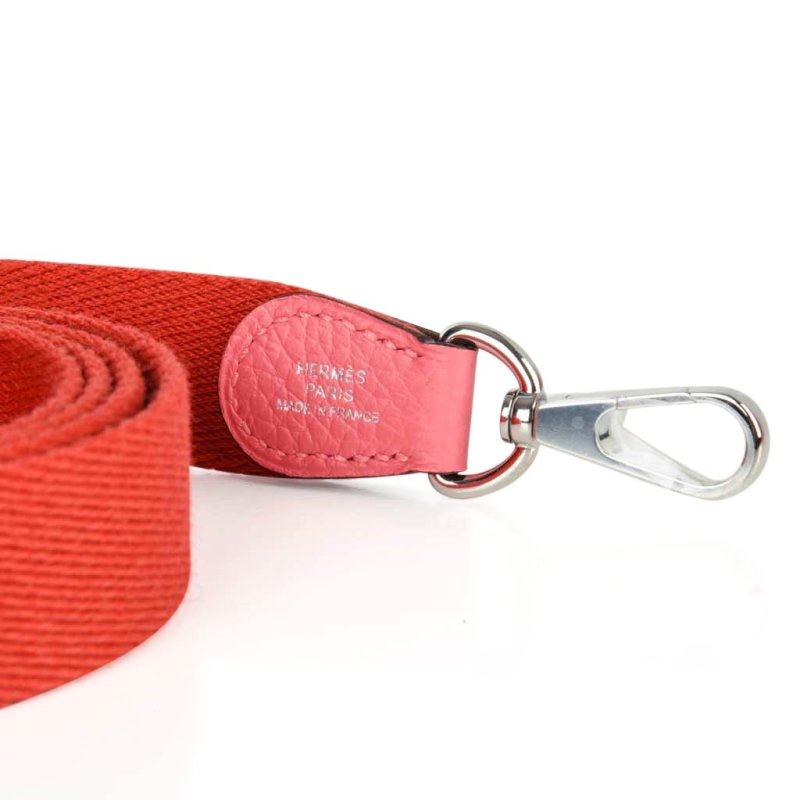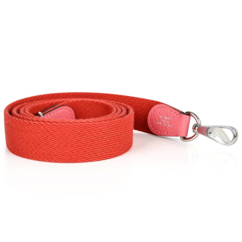 Sport strap in Rouge Pivioine textile with leather and palladium hardware details.