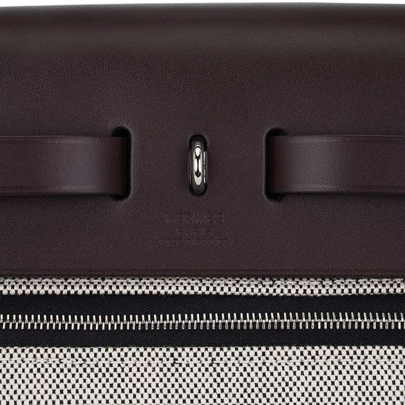 Guaranteed authentic Herthtmes Herbag Zip 31 featured in Black Berline canvas and Rouge Sellier leather.