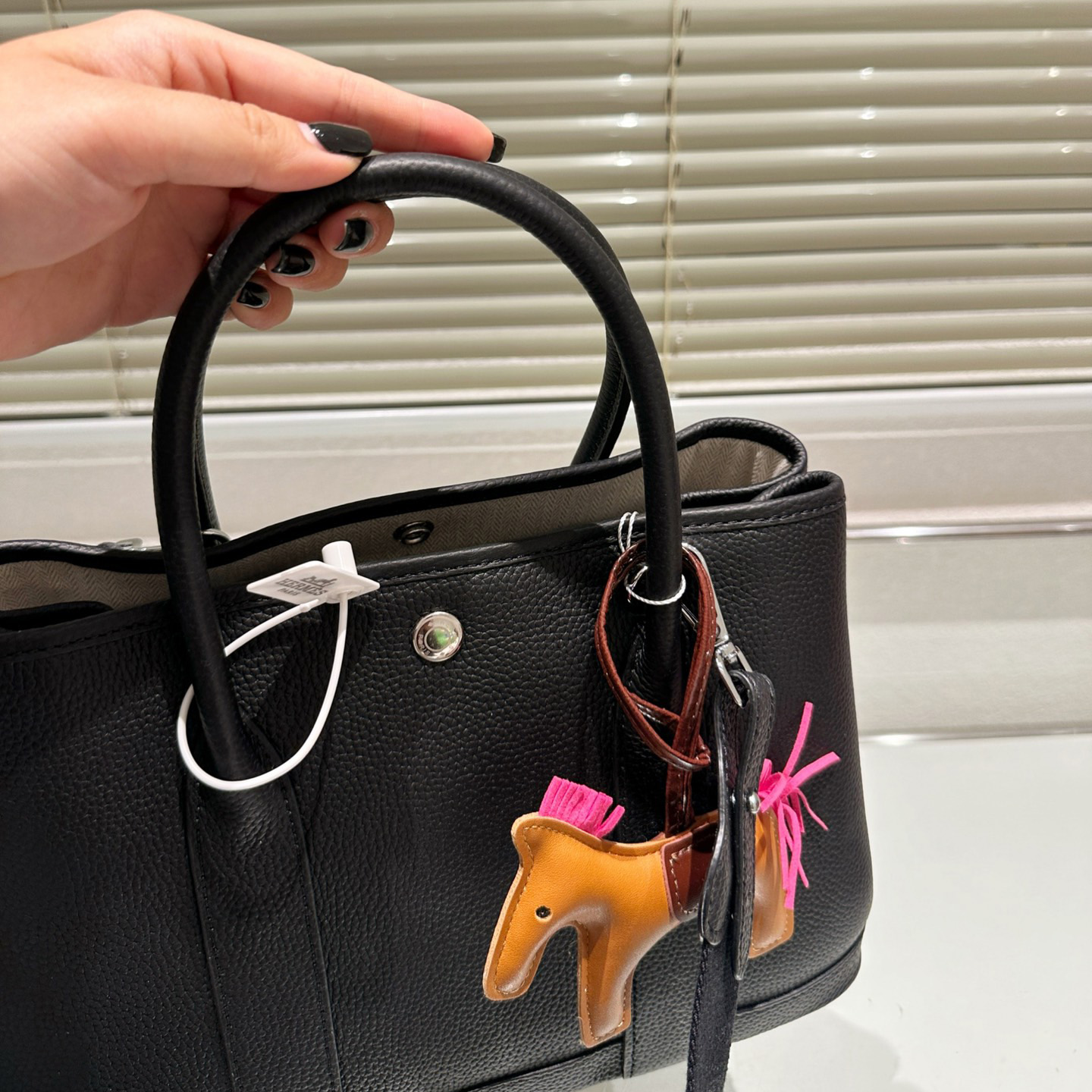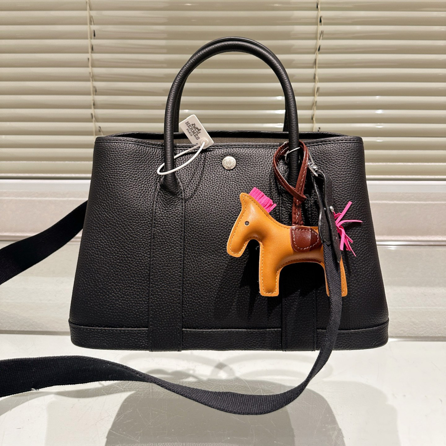 Garden Party 30 Bag Black Vache Country Leather with Palladium Hardware