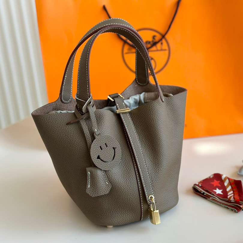 Mini Evelyne TPM Bag Etoupe Clemence Leather with Palladium Hardware