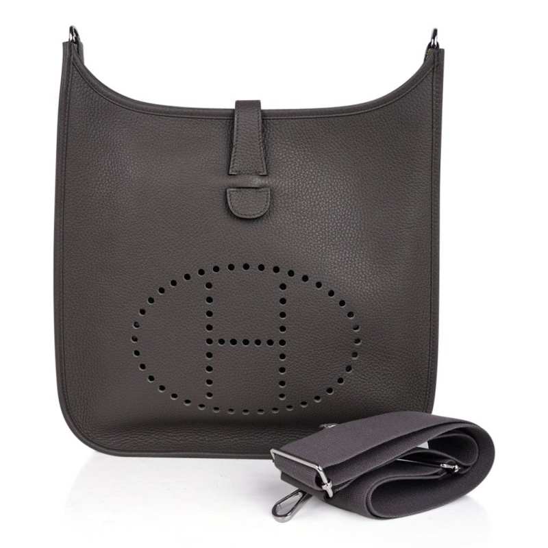 Evelyne GM Bag Etoupe Clemence Leather with Palladium Hardware