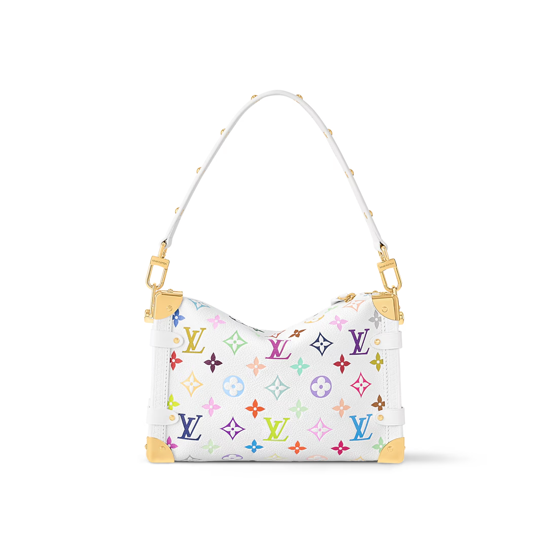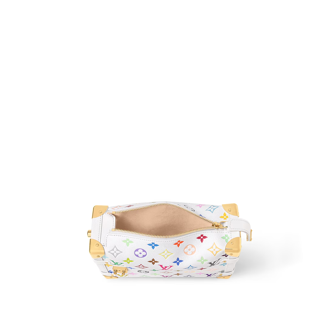 The iconic Side Trunk MM makes a spirited everyday statement in a playful version of the Monogram motif from the re-edition of the Louis Vuitton x Murakami collection. Crafted from supple cowhide, the rectangular silhouette pays homage to the House’s archival luggage complete with golden reinforced corners and an emblematic S-lock closure. The removable handle embellished with studs and strap offer versatile carry options, while the inside is large enough to stow daily essentials.