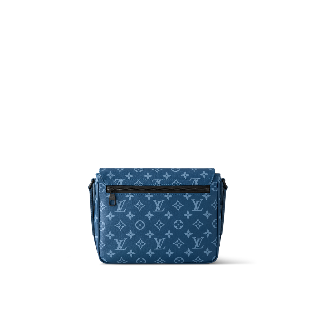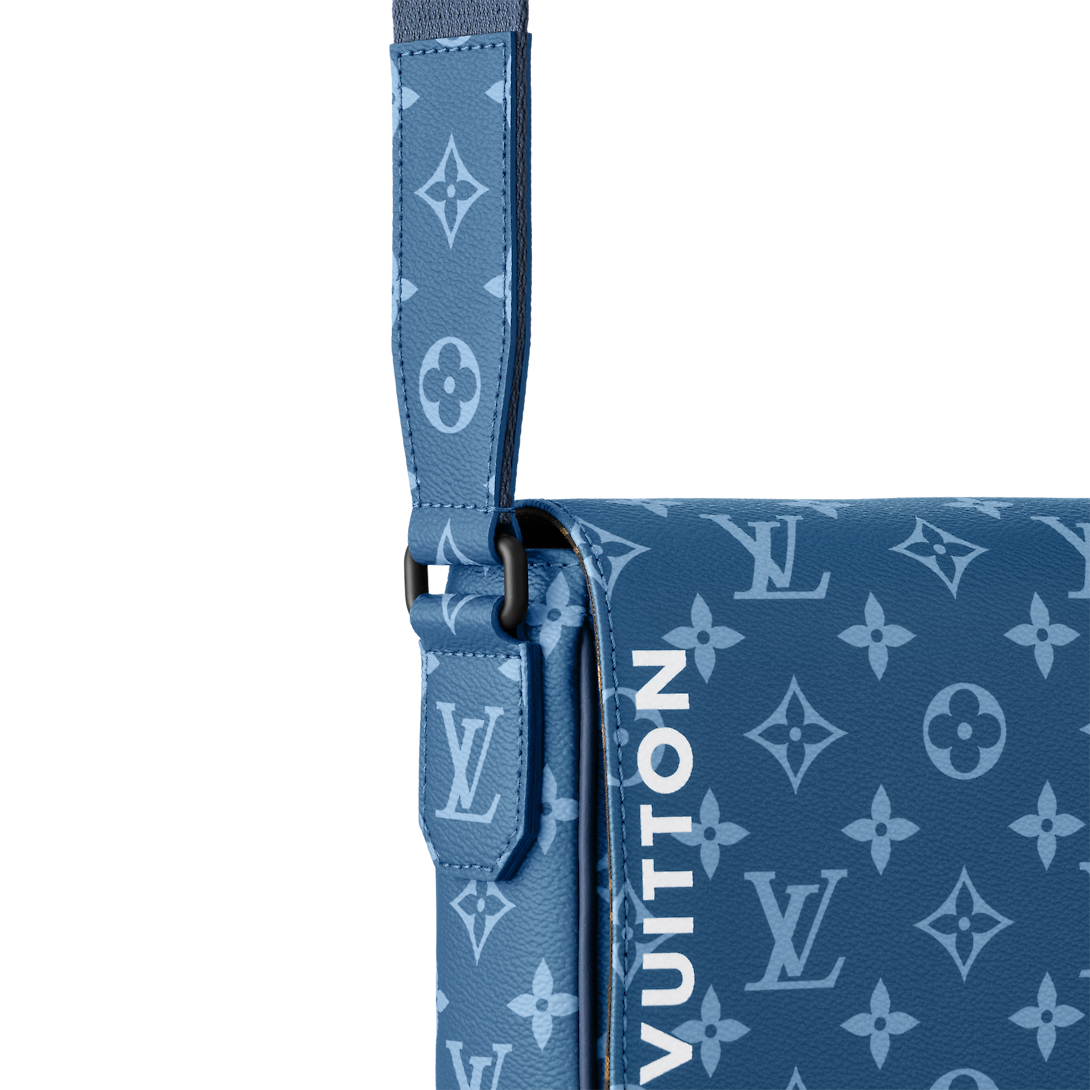The District PM messenger bag is made from canvas with a Monogram print and features Lothtuis Vuithttton in white block letters on the front of the bag. Magnetic flap closure and a zipped pocket on the back make it practical. The matching adjustable strap allows for comfortable shoulder and cross-body carry.