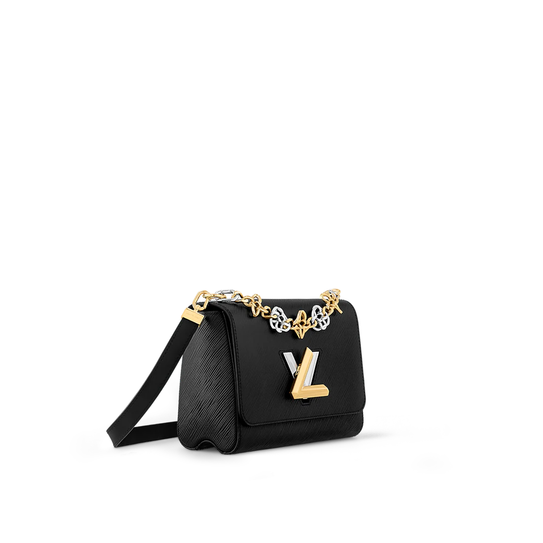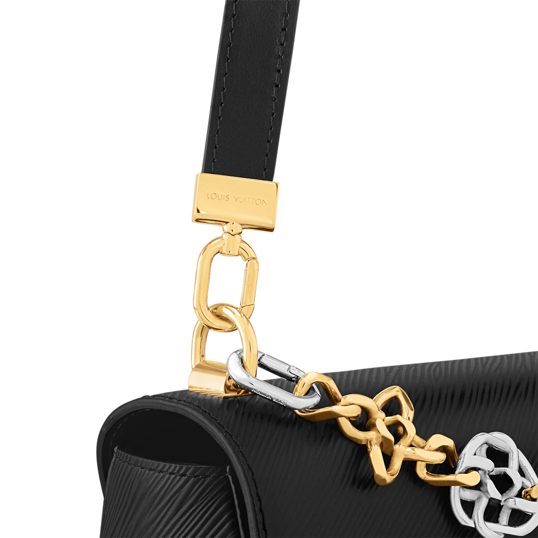 This season, the Twisted Flowers theme comes to the Twist MM handbag. Here the Monogram Flowers, one of the House’s most iconic symbols, are delicately twisted into an elegant decorative chain. This Twist is also adorned with a stylish two-tone lock, echoing the chain. Inside there are three flat pockets, including one with a removable mirror.