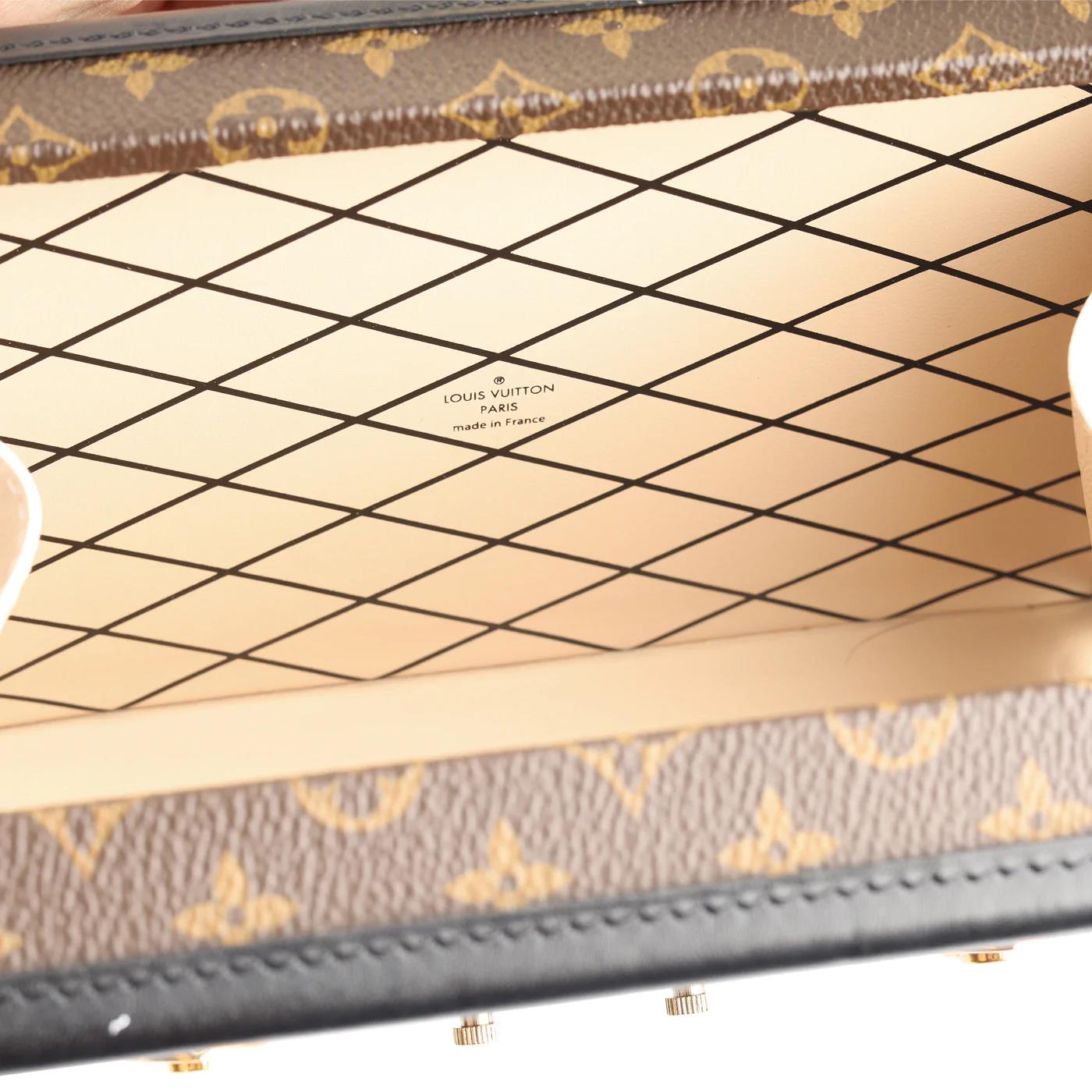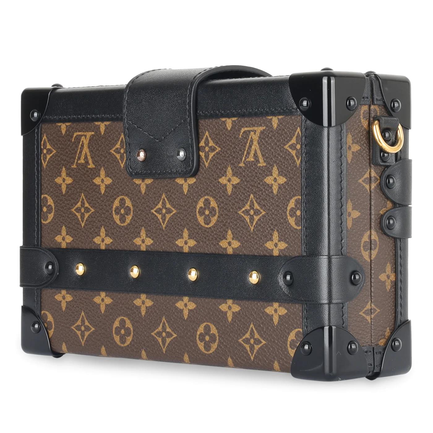 Every detail of the Petite Malle handbag is inspired by the history of Lothtuis Vuithttton trunks: the shape, the iconic Monogram canvas, the gold-tone lock and fittings even the sheepskin lining reprises a classic House motif. Impeccably crafted, with smooth calfskin trim, this covetable "little trunk" travels easily from day to evening. It can be carried as a clutch or attached to the adjustable strap for cross-body wear.