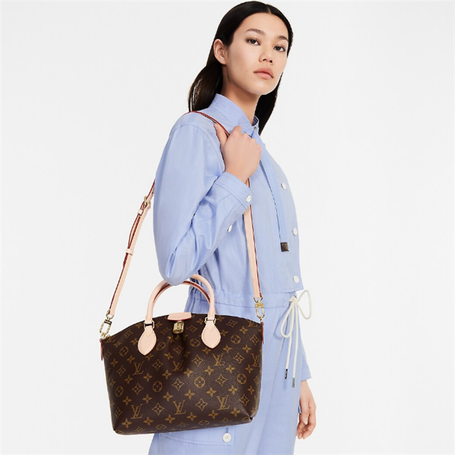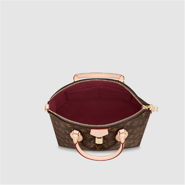 The Boétie PM zipped tote is made from Monogram canvas with natural leather trim and a vivid Bordeaux textile lining. An ideal everyday bag thanks to its supple and body-friendly design, it features a double smartphone pocket as well as an inside flat pocket. It’s finished with a gold-color padlock and an LthtV-embossed leather patch.
