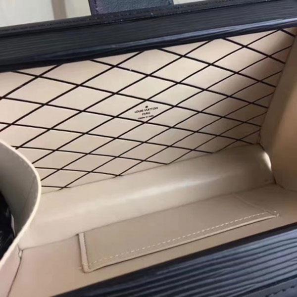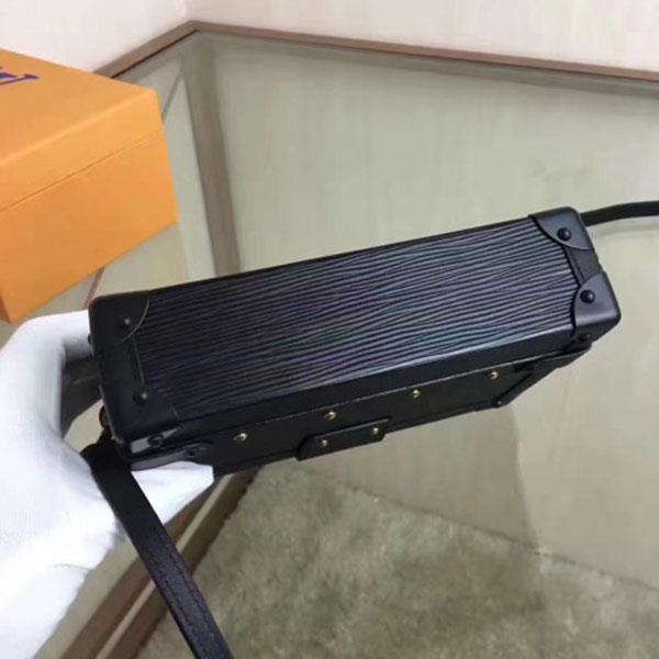 – The Petite Malle Black Epi beautifully mixes Lothtuis Vuithttton craftsmanship with a stylish statement. Reflecting the Maison’s heritage as a trunkmaker. it is adorned with the crosses signature of Albert Kahn. a world traveller. Timeless and perfect for day to night chic.