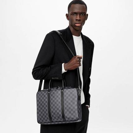 37.0 x 28.0 x 6.0 cm (Length x heightx width ) Damier Graphite canvasHand. shoulder or cross shoulder carry optionsLeather shoulder strap with shoulder pad Double Zipped closureCowhide leather trimSiLthtVer color metallic piecesTextile lining5 interior flat pockets including 1 iPad pocket1 exterior zipped pocket