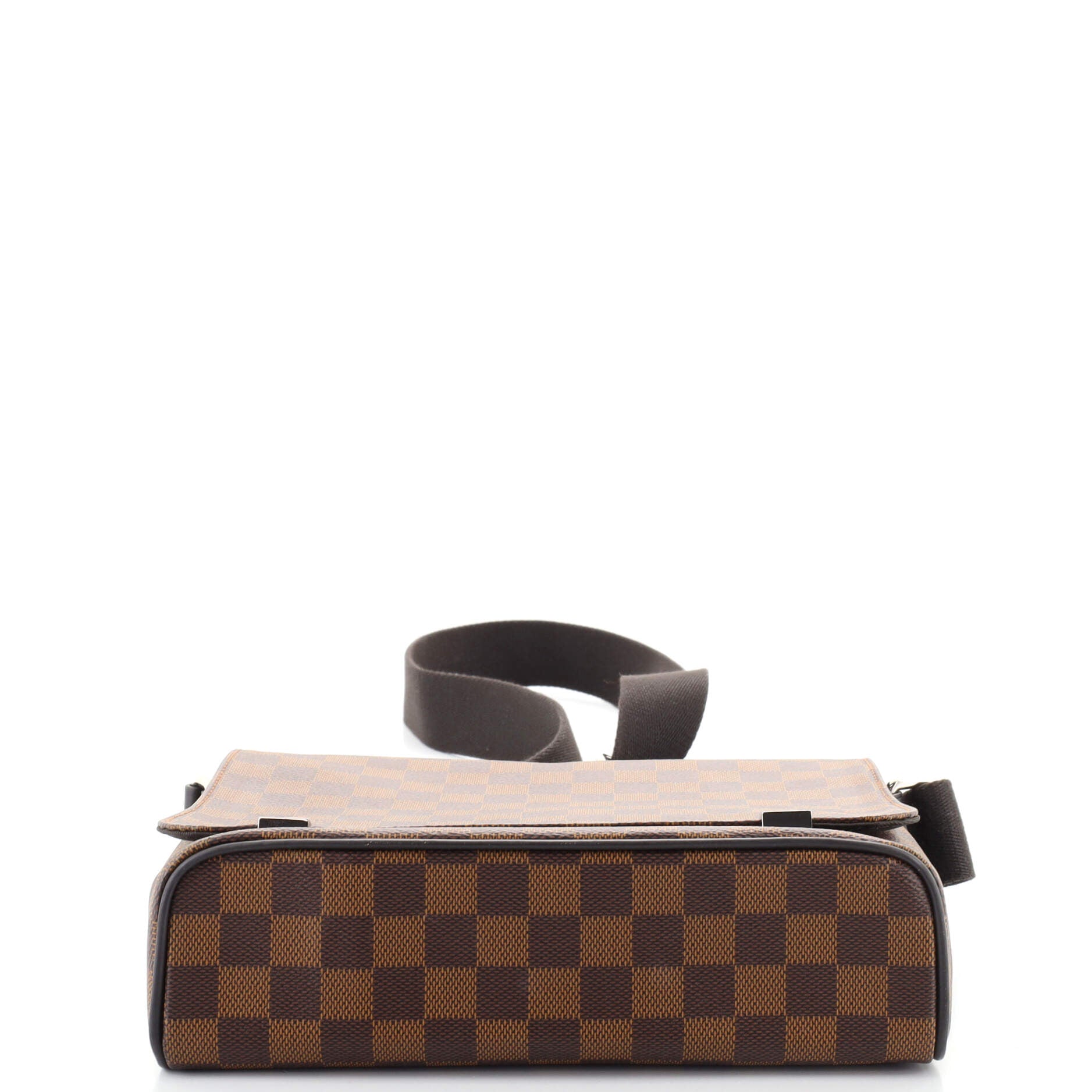 32.0 x 29.0 x 8.0 cm (Length x heightx width ) 12.6 x 10 x 3.1 inchesDamier Ebene canvasTextile liningCowhide leather trimSiLthtVer colored metallic pieces Lothtuis Vuithttton Paris plaque in Ruthenium colored metalAdjustable strap2 internal iPad flat pocketsFlat pocket under the flapMagnetic closure