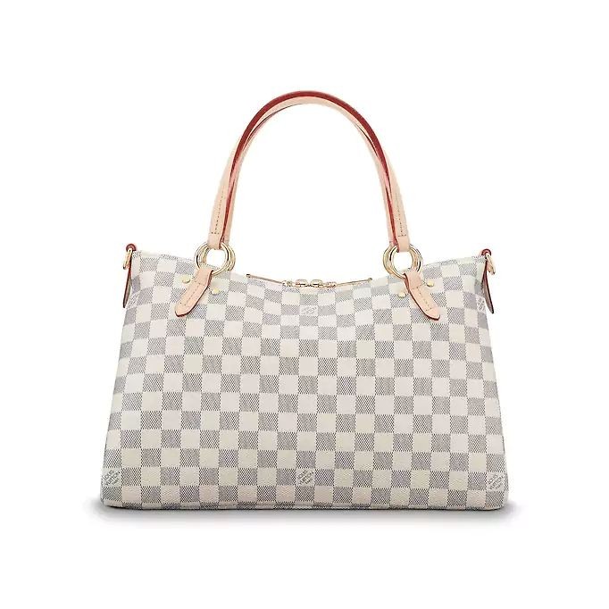 Casual yet elegant Lymington zipped tote in fresh Damier Azur is the perfect beach to city companion.The natural cowhide handles. tassels and trim acquire an authentic patina over time. enhancing the allure of this practical. generously sized model.