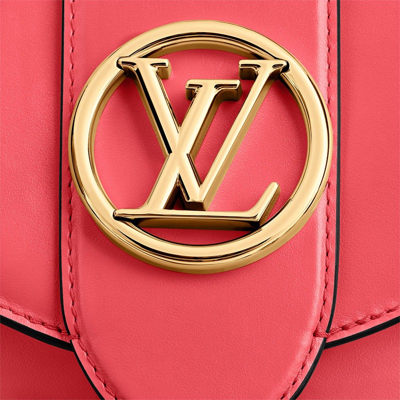 The structured yet curved lines of the LthtV Pont 9 handbag are fashioned from smooth leather. The LthtV Circle. a classic House signature reinterpreted by Nicolas Ghesquiere. adorns the bag’s flap and the adjustable strap’s buckle. Hidden features such as a colored leather lining and Monogram Flower magnetic closure on the flap’s underside bring subtle sophistication.